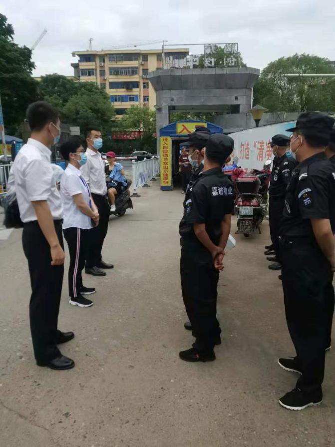早起的吉安人民也許會納悶,中心醫(yī)院門口的安管員怎么一夜之間換裝了?只見目光堅毅,戴著口罩,身著全套嘉誠物業(yè)作訓(xùn)服的安管員以嚴肅的軍姿佇立門崗,令人肅然起敬。當(dāng)有人走近大門,安管員先敬禮,再上前詢問,同時手持著測溫槍開始測溫登記,動作干凈利落,語言文明禮貌,態(tài)度可藹可親;還有認真清洗拖掃、消毒消殺的保潔人員,巡查設(shè)備設(shè)施,保障后勤的工程人員等,他(她)們揮汗如雨,忙忙碌碌的身影,真是一道道亮麗的風(fēng)景線!
