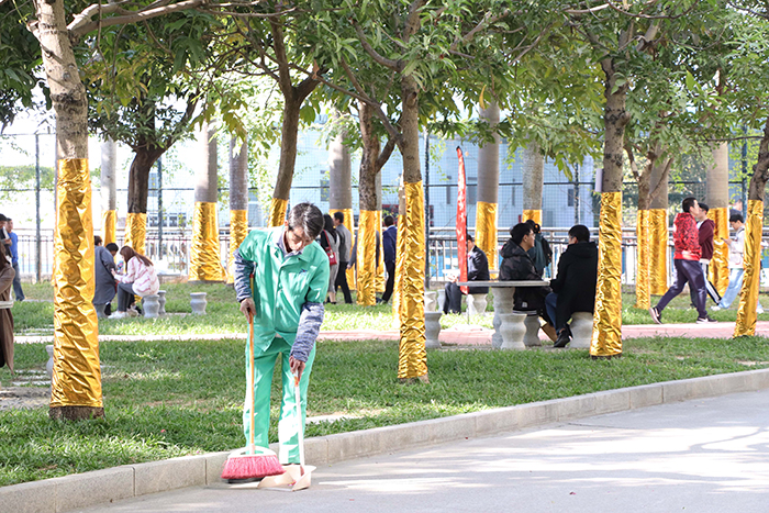 物業(yè)保潔隊伍時刻為校慶活動提供整潔干凈的活動場地