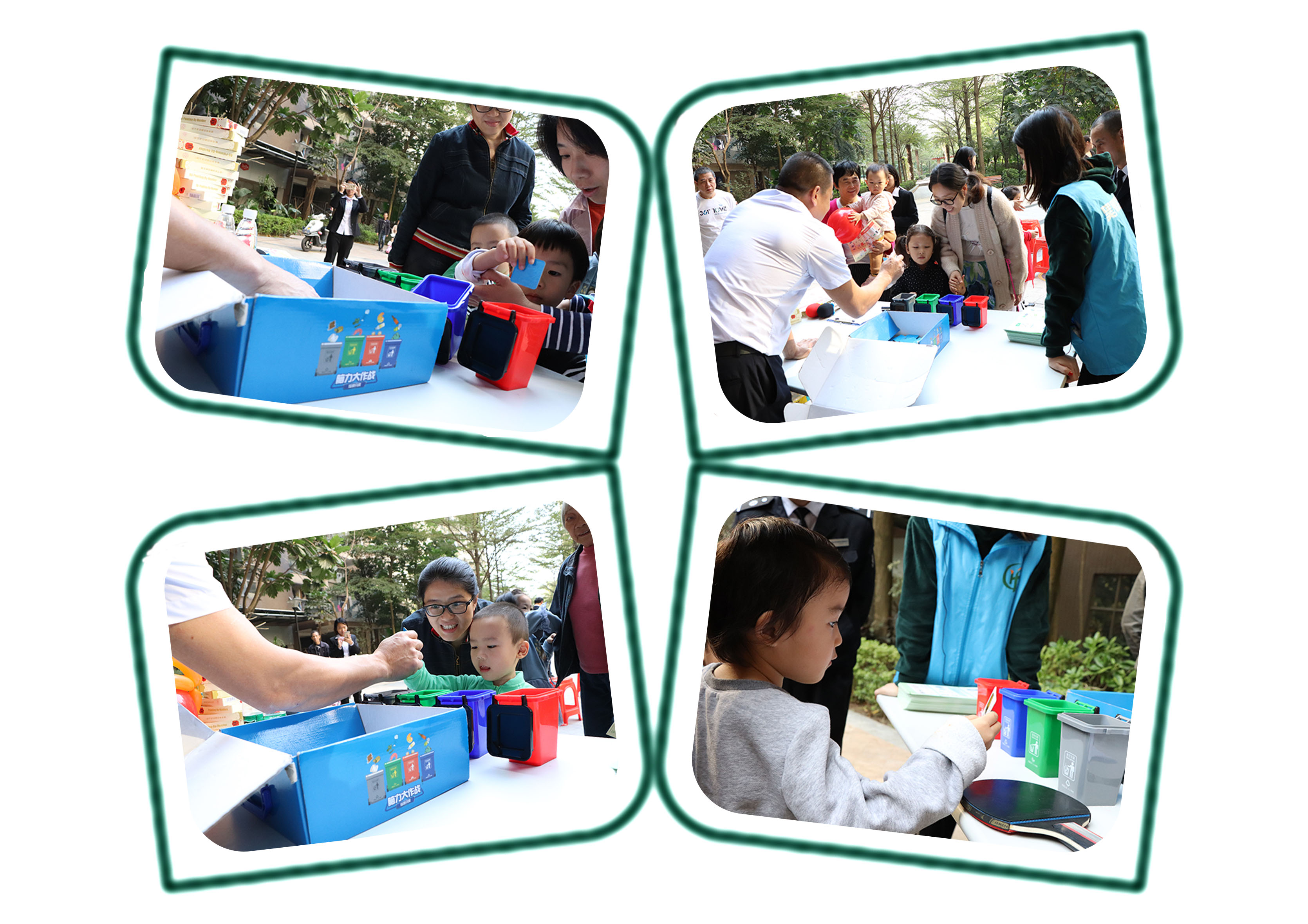 工作人員耐心引導,業(yè)主和孩子們積極參與,美好的親子時光在小區(qū)中流淌,父母的耐心教導,小朋友的細心思考,然后認真的投入垃圾箱模型中,享受著其中的樂趣,答對的小朋友不僅會獲得大家的稱贊也可以得到小小的獎勵,提高孩子對垃圾分類的興趣,業(yè)主和孩子們的歡樂時光盡在其中。