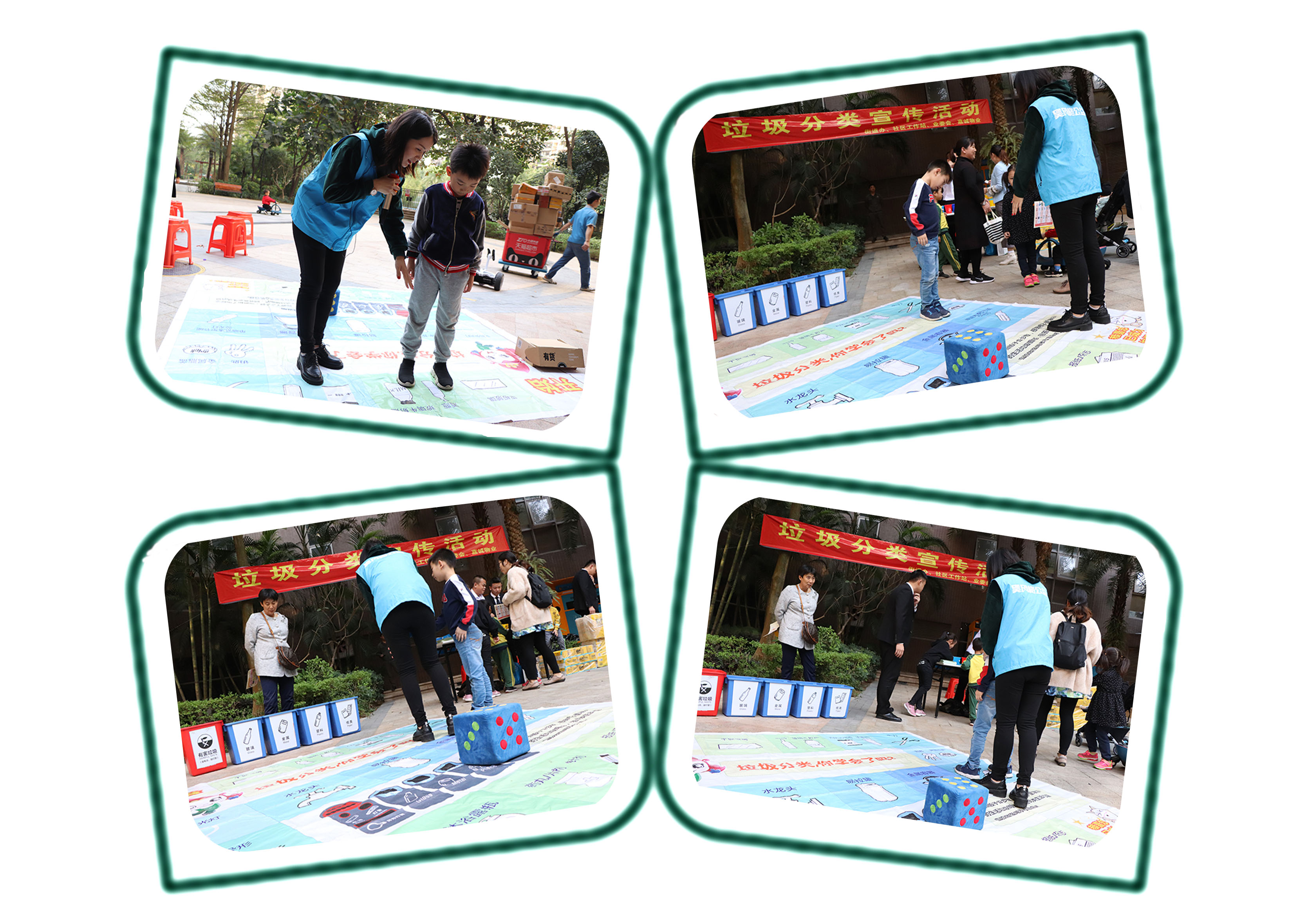 活動現(xiàn)場準備了垃圾分類小卡片、設立垃圾箱模型等物品,通過“垃圾快速投放”小游戲,讓參與者快速區(qū)別垃圾種類,正確投放;使用棋盤和骰子等物品為道具,通過“大富翁”的小游戲,讓小朋友清楚的知道垃圾的種類,從而更好的認識垃圾該如何分類,從小抓起,讓小朋友們從小就養(yǎng)成垃圾分類的好習慣。