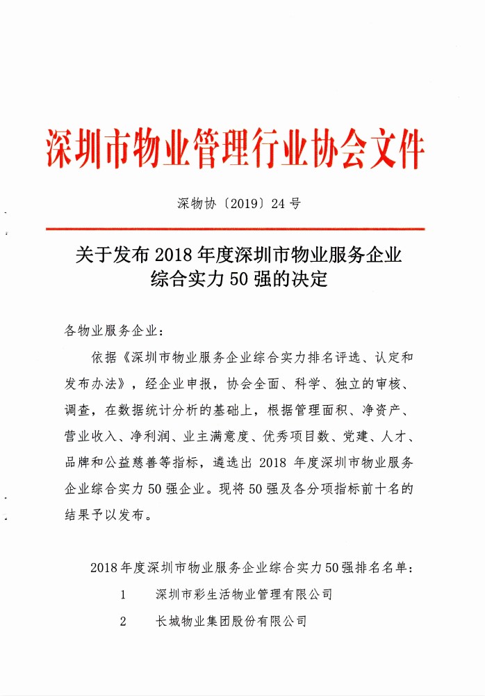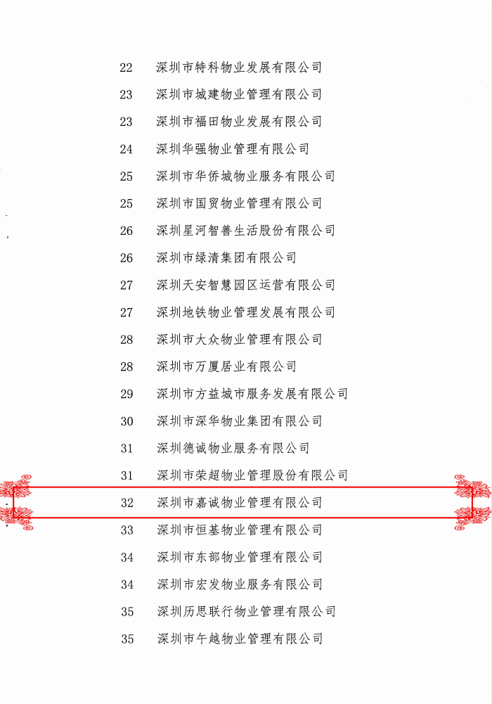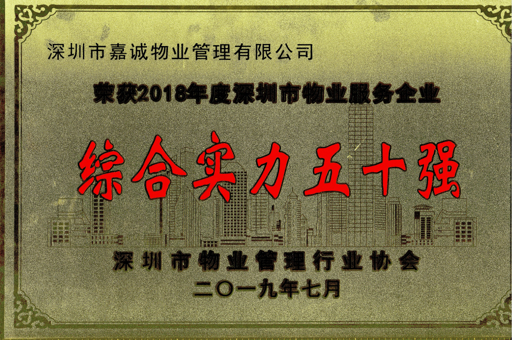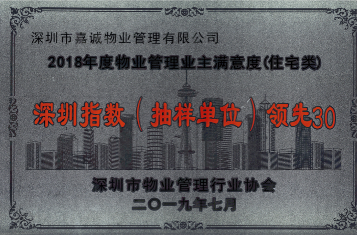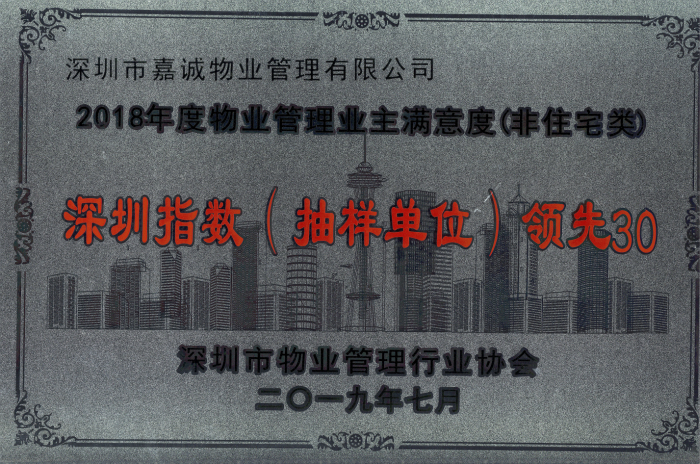 嘉誠物業(yè)榮獲2018年度深圳市物業(yè)服務(wù)企業(yè)