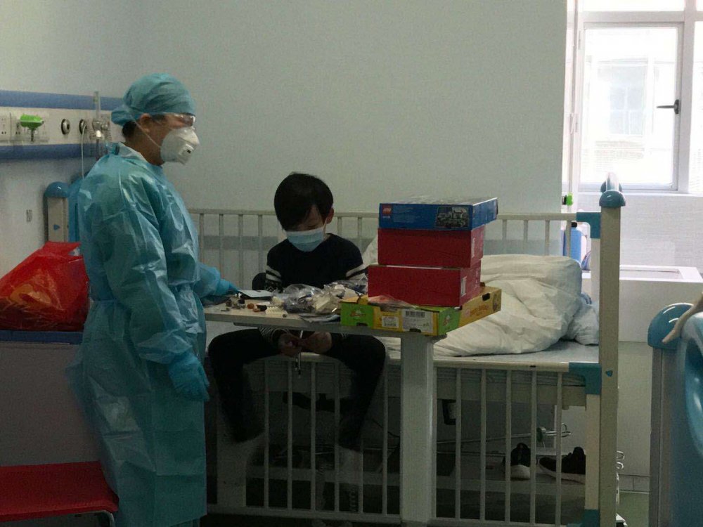 在護士長現(xiàn)場培訓(xùn),交待工作流程后,鄒映快做好二級防護,戴上面罩來到310房32床,只見男孩幼小的身軀蜷縮在寬大的被子里,那一雙緊張而又無助的眼睛幾乎被一副成人口罩遮住,可恨的病毒,讓一個年幼無辜的孩子承受莫名的懼怕與痛苦!醫(yī)者仁心,鄒映快看在眼里,痛在心里,鼻子一酸,眼淚差點掉下來,暗自決定盡最大的努力去照護這個小男孩,幫他平安度過隔離期。于是,她開始了悉心照護小男孩的工作流程:協(xié)助早起洗漱、每日三餐、飯后睡前服藥、下午三點洗澡換洗衣服、每天看電視2小時、督導(dǎo)寫作業(yè)及玩具互動、按醫(yī)囑定時測體溫等生活護理,流程的描述語言是蒼白的,但照護行動的每一環(huán)節(jié)都是有溫度,帶感情的,慢慢地,小男孩喜歡上這位鄒阿姨了,也會調(diào)皮地向她撒嬌、頂嘴等,鄒映快用自己的耐心、細心、母性的愛心讓小男孩一天天開心快樂起來。