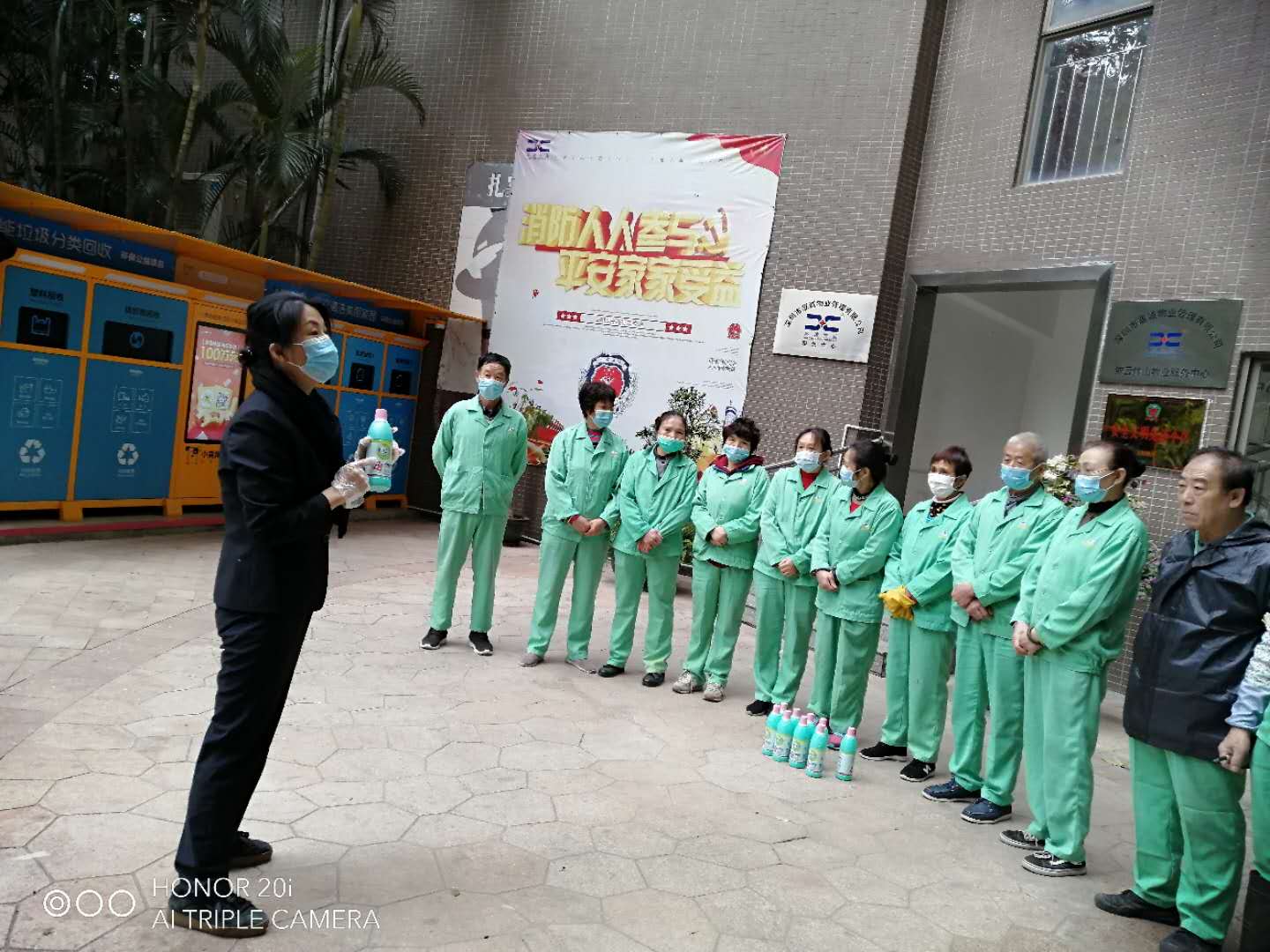 新冠肺炎疫情爆發(fā)之時,她正在家中休假,年三十晚上,正當(dāng)項目經(jīng)理準(zhǔn)備聯(lián)系她時,她已經(jīng)簡單安排了一下家里,背上包打車返回項目,到達小區(qū)時已經(jīng)22時了,然后一刻不停直沖服務(wù)中心辦公室,主動請纓挑起小區(qū)防疫工作的重頭戲----清潔和消殺,面對來勢洶洶的病毒,對于一個總建筑面積近18萬平方米,14棟高樓,1200多住戶的小區(qū)來說,做好防疫工作的確容不得半點麻痹大意,唐群英深知肩上的責(zé)任,毅然決然地用她柔弱的雙肩勇敢地挑起了這萬鈞重擔(dān),帶領(lǐng)著環(huán)境部的一幫大叔大嬸在小區(qū)忙碌起來。小區(qū)28臺電梯,逐一清潔消毒,按鍵面板貼上保鮮膜,每2小時換一次,消毒一次;垃圾集中分類點,應(yīng)清盡清,消殺除毒;大門崗.大堂.樓道.地下車庫等公共區(qū)域,不留死角,全方位消殺...,功夫不負有心人,如今小區(qū)零確診,零感染的事實,就是她在這次抗疫工作中交出的完美答卷。