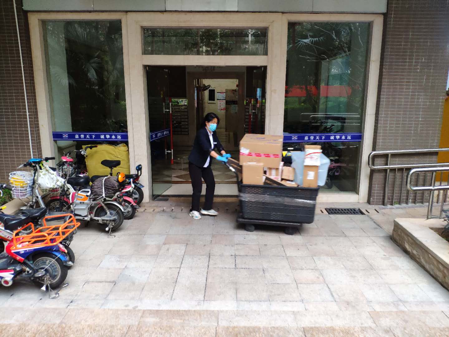 針對小區(qū)封閉管理,快遞人員禁入小區(qū),部分居家隔離戶及業(yè)主外賣快遞無法到家的現(xiàn)實,唐群英與項目經(jīng)理商議后,主動承擔(dān)起分揀配送,愛心傳遞的重任,每天6000多份快遞,遠超雙十一的量,她任勞任怨,帶領(lǐng)一班人中午.晚上兩次配送,或送到大堂,或送上門,忙到晚上12點是常有之事。在小區(qū),業(yè)主對她有口皆碑,有困難,找唐唐!這是小區(qū)業(yè)主的心聲,樂呵呵的她,就這樣堅持不懈扛著業(yè)主的使命拼搏著!
