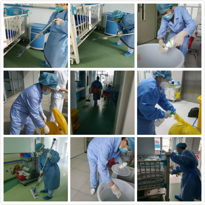 寶安婦幼保健院發(fā)熱門診、住院三樓隔離病房的后勤物業(yè)人員“陳鳳英、李桂枝、夏冬華、胡海云等”身穿藍色防護服,她們每天早上5點就要開始清理病房衛(wèi)生,全天24小時維護現(xiàn)場定時清除垃圾,整理病房,在院感的指引下進行消毒等工作,保證病房居住環(huán)境。