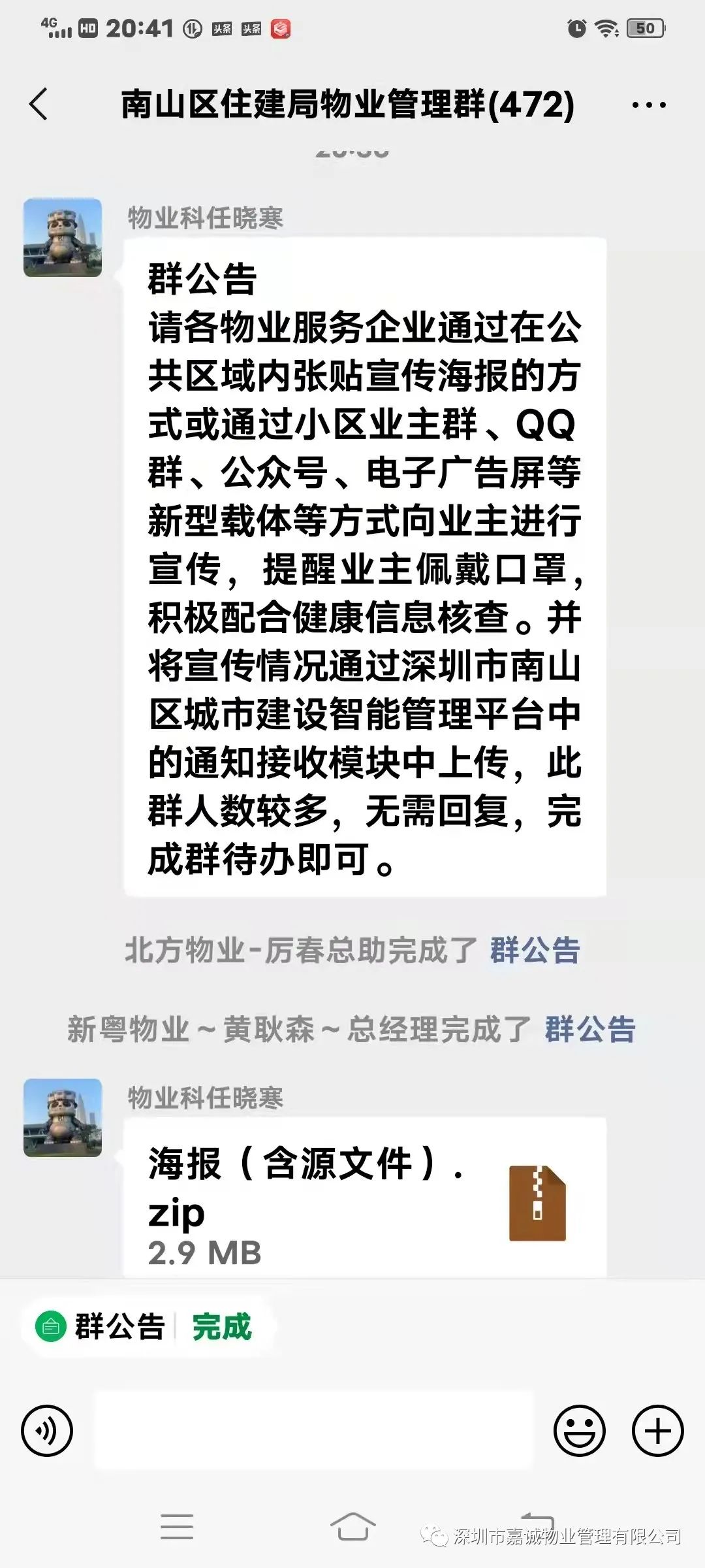 凡事預則立,不預則廢!嘉誠人從不打無準備之仗,公司馬董事長、魯總、王總親自部署落實,協(xié)調抗疫工作,從制度上先著手,高屋建瓴,統(tǒng)籌協(xié)調嘉誠物業(yè)抗疫工作,各職能中心及事業(yè)部分工合作,各片區(qū)包保到人,各負其責。發(fā)布各類防疫工作指引,做好應急預案,并針對各項目突發(fā)的新問題提出合理的解決方案,加強抗疫宣傳動員和思想引導,隨時隨地為項目服務,提供政策和技術支撐。