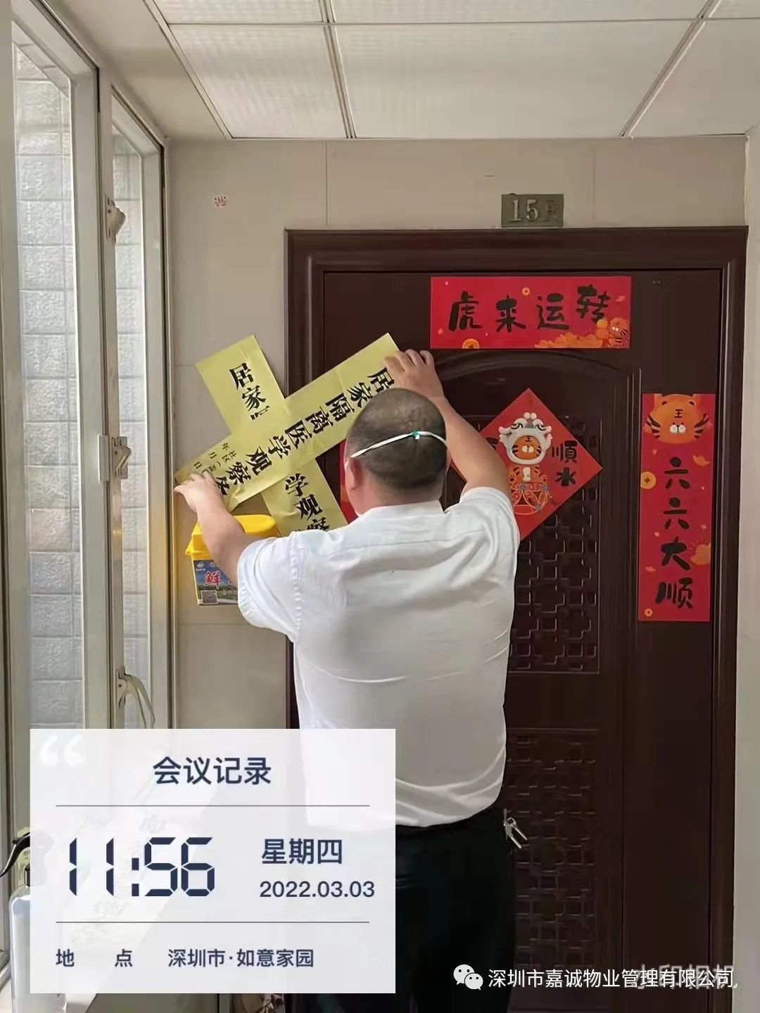疫情就是命令,防控就是責任!我司決策層聞令而動,從上到下,全體嘉誠人無畏逆行,組織動員,部署落實,統(tǒng)籌協(xié)調,嚴格按照國家、省、市相關部門關于新型冠狀病毒感染的肺炎疫情防控要求,密切配合政府,層層布控,步步落實,在項目有序展開了抗擊疫情的阻擊戰(zhàn),與全體業(yè)主共同守護我們的健康家園。