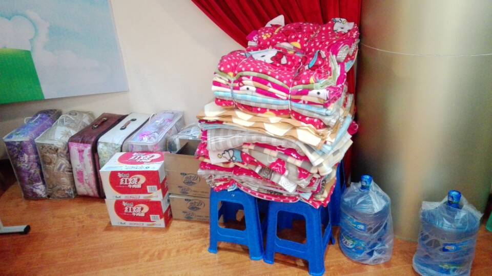 (為求助市民準(zhǔn)備好基本食物和飲用水及被褥)